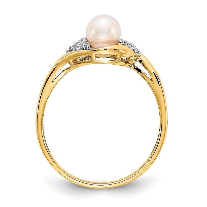 Freshwater Cultured Pearl & Diamond Ring in 14k Yellow Gold - Diamond Weight 0.02 Carat Gemstone Weight 1.13 Carat in 14k Yellow Gold - Gift Ready Jewelry Box Included - Size 7.00 - Thickness: <2mm - Band Width: 2mm - Band Top Length: 6mm - Band Top Width: 10mm - Band Top Width: 10mm - Band Top Length: 6mm - Feature: Solid - ::: ::: [ Care & Handling: Diamond ] - Clean with warm soapy water and a soft brush or cloth. ::: ::: [ Potential Enhancement Methods: Cultured Pearl ] - They are usually bleached and polished to achieve a uniform color and shape. Can be dyed or irradiated to produce different colors. ::: [Care and Handling: Cultured Pearl] - Do not use ultrasonic cleaners or steamers. Avoid contact with cosmetics, hairspray, perfumes, and household chemicals. Wipe clean with a soft cloth. :::