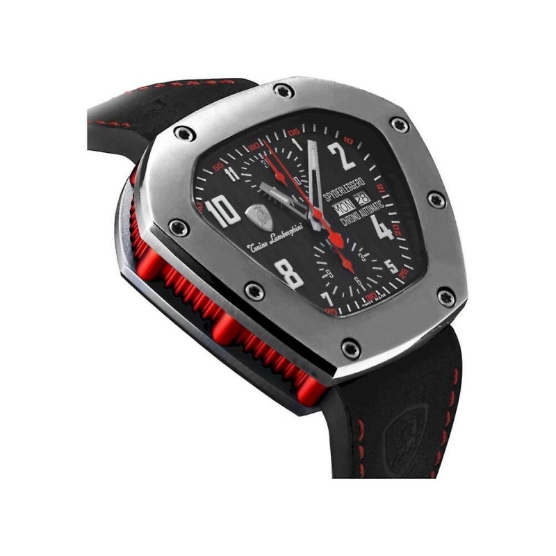 Brand: Tonino Lamborghini Target Group: Men Case Color: Silver Crystal: Anti-reflective Sapphire Bracelet Material: Leather ? mm: 51x46 Case Material: Titanium Dial Color: Black Display: Analog Strap Color: Black Product Group: Watches Functions: Date Display Watch Type: Automatic Movement Type: Automatic Water Resistance: 10 ATM